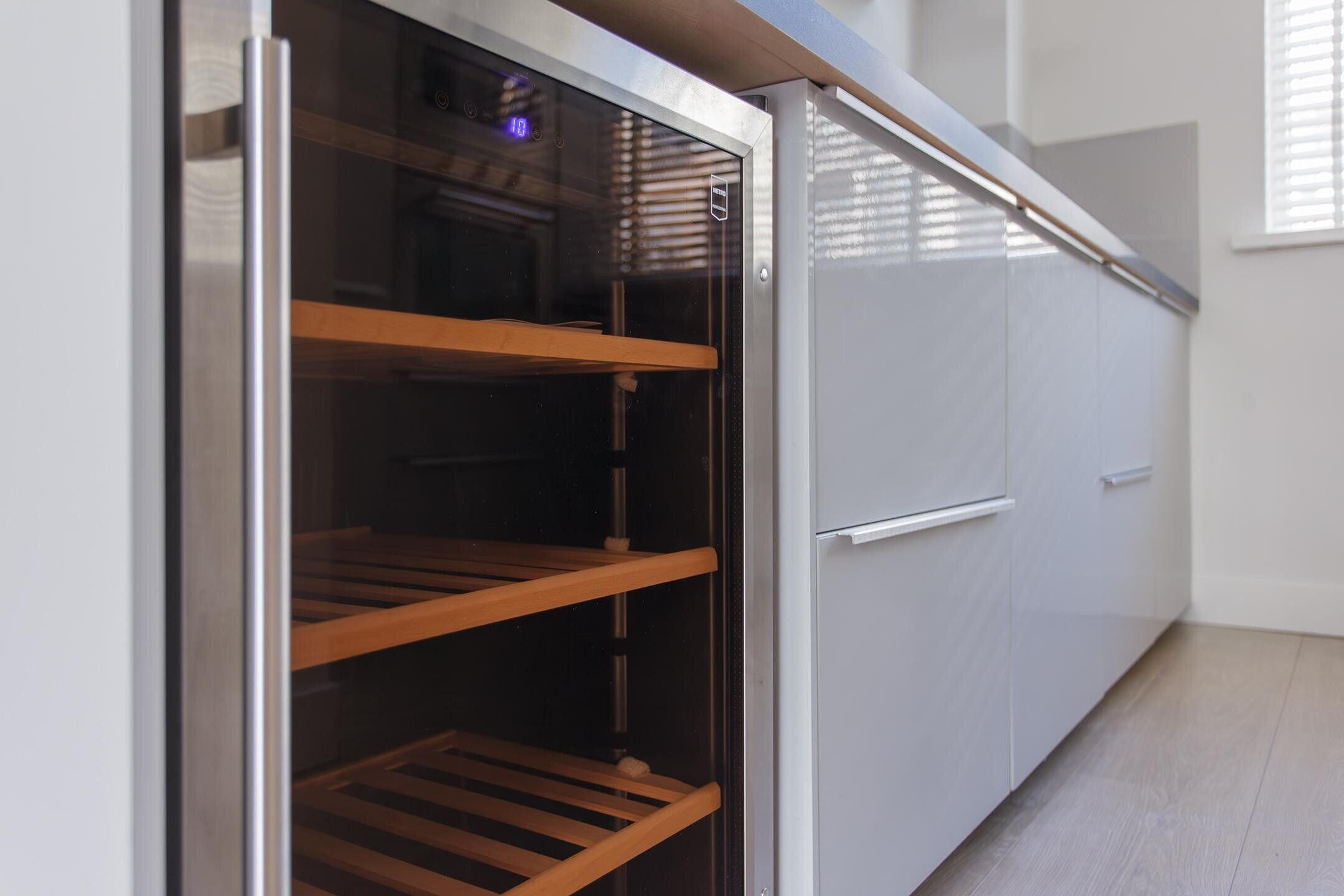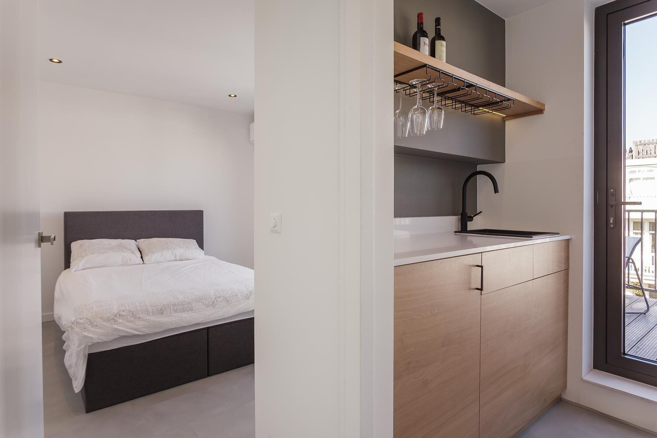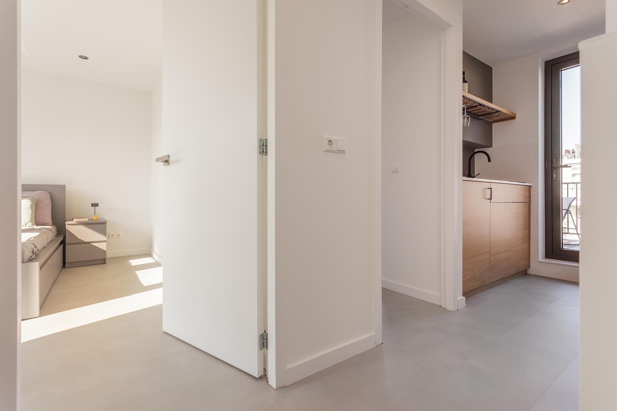 De lichte woonkamer sluit direct aan op een zonnig terras, een heerlijke plek om in alle rust te genieten. De moderne open keuken is voorzien van diverse luxe inbouw apparatuur.